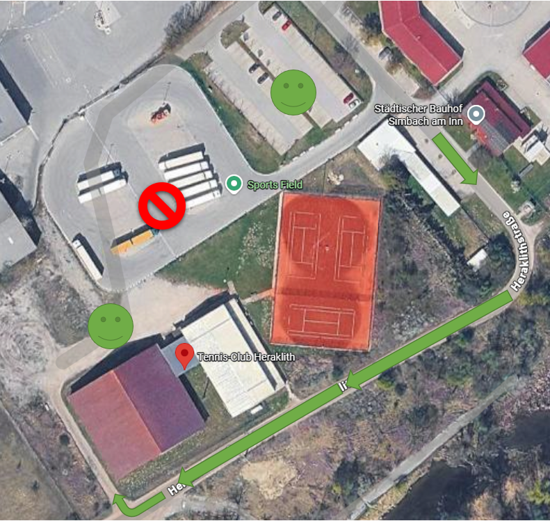 Bitte parkt aus versicherungstechnischen Gründen nicht auf dem LKW-Parkplatz der Fa. Knauf. Es stehen Parkplätze direkt vor der Halle zur Verfügung (leider derzeit noch nicht optimal für saubere Autos), sowie der geteerte Parkplatz vor dem LKW-Parkplatz. Es ist geplant hier 2026 eine Verbesserung zu erreichen, aber es gibt noch keinen finalen Zeitplan.
